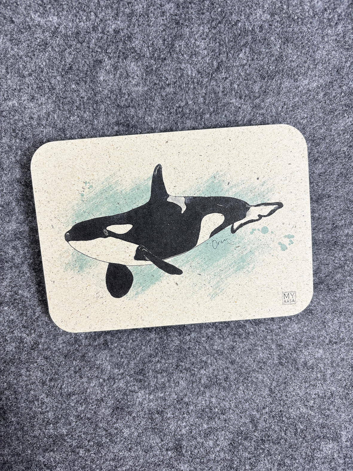 Das Orca-Motiv verleiht der Karte einen einzigartigen maritimen Charakter und unterstreicht die natürliche Struktur des Papiers. Die Kombination aus umweltfreundlichem Material und liebevoller Illustration macht diese Karte zu einem besonderen Geschenk oder einer stilvollen Botschaft für alle, die Natur und Meer lieben.